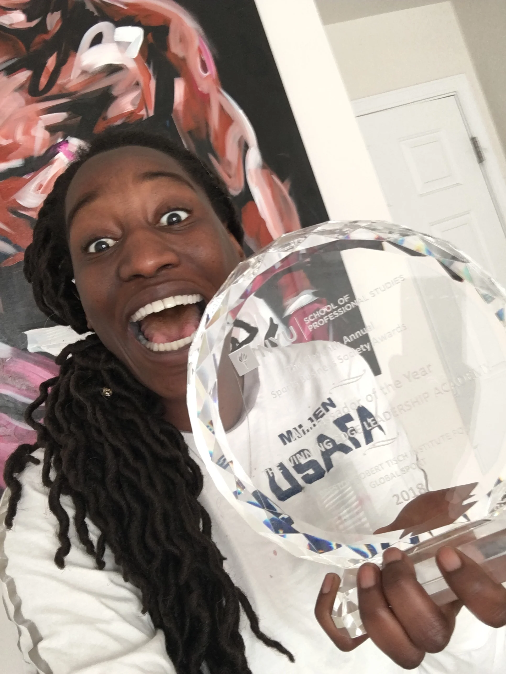 Last Monday, I accepted NYU's School of Professional Studies Preston Robert Tisch Institute for Global Study Ambassador of the Year award on behalf of The Winning Edge. I may have been standing on the stage alone that night but they are so many supporters that deserve recognition that helped us get to where we are in year three. I want to take the time to acknowledge them and show my appreciation for their commitment to our mission of developing the next generation of women and minority leaders in sports business.
